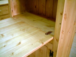 収納扉を手前に開く(倒す)とそのまま作業テーブルになります。